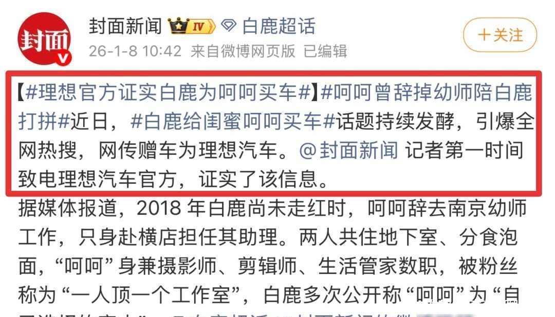 刚进入一月没几天,网上就突然热闹起来,演员白鹿给她的闺蜜“呵呵”买了一辆理想汽车,消息一出来就直接上了热搜榜,理想官方也承认了这件事,但没有说明购买的是哪款车型,也没有提到具体的交车时间,大家都很好奇这辆车的样子和价格。